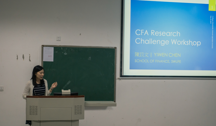 首先,来自西南财经大学的陈苡文老师结合CFA全球投资分析大赛的具体要求及指导经验,向同学们分享了比赛的要求、注意事项以及相关的资料收集途径等等,并现场耐心解答了同学们关心的问题。