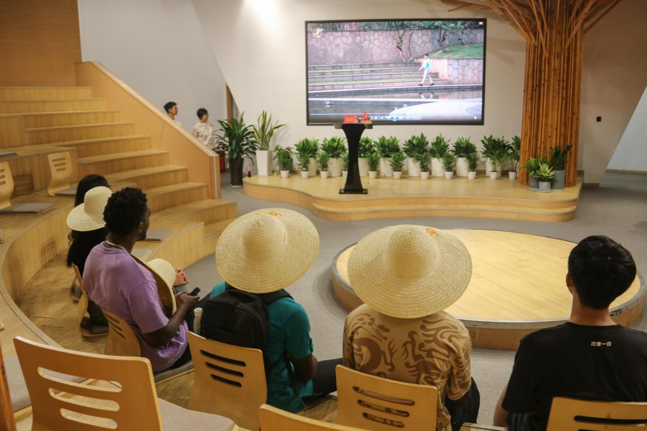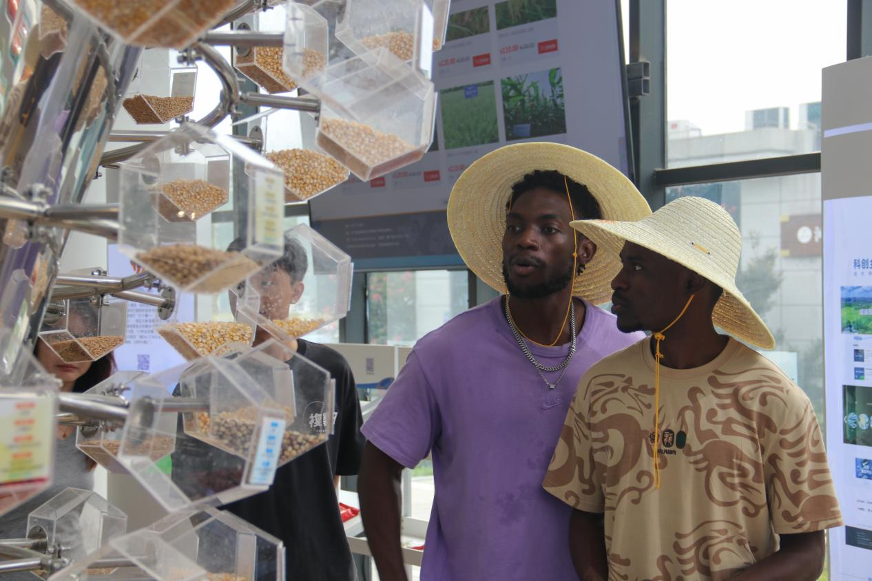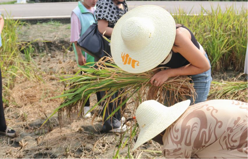 同学们首先来到了川农牛稻米种植基地。据成都现代农业产研院工作人员张可介绍:目前基地主要培育的品种为“川农牛红香糯”,具有自带天然香味、富含花青素糯性优、米质口感上佳等特点。随后,在沈倩岭教授的带领下,同学们戴上草帽,拿起镰刀,下到稻田里亲身体验稻米的收割过程,一同分享丰收的喜悦。来自加蓬的李安德同学感叹道:“这是我第一次见到红色的稻谷,更是我第一次亲手收割稻谷,一想到我收割的稻谷将来也会变成碗里的米饭,我感到非常神奇与幸福!”