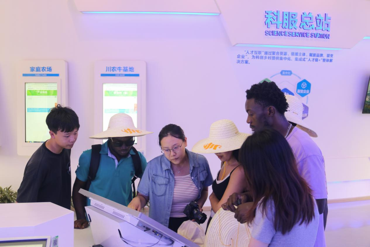 在辛勤劳作后,工作人员带领国际经济与贸易系的师生们参观讲解了数字田园、科创乡村·云超市、科创云课堂、种业互联等全链条、全周期乡村振兴集成赋能系统,感受农庄“产学研融合创新”的现代农业科技成果转化模式。