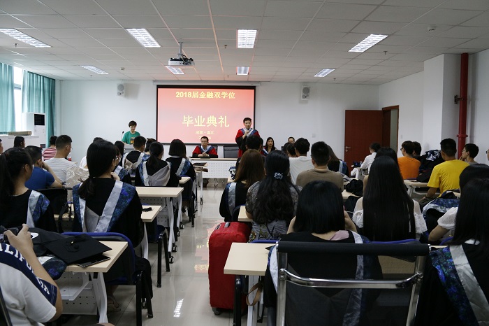 6月27日,金融双学位2018届毕业生授位典礼在成都校区举行。冰球突破mg正规官网副院长吴平,金融系副系主任臧敦刚副教授,金融系教师徐慧丹、宋坤、钟莹,近百名毕业生代表及部分家长参加了毕业授位典礼。