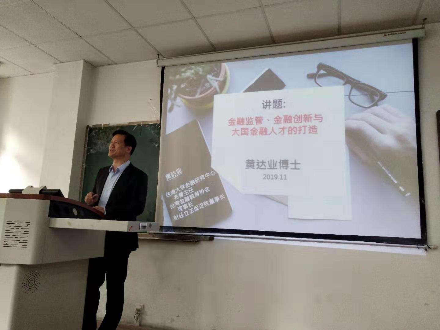 11月24日上午,台湾大学财金系黄达业教授应邀来冰球官网作“银行业国际竞争力与高级金融管理人才”学术报告。学院副院长吴平主持了本次报告,投资系、区域经济研究所部分教师与100余名师生一起聆听了报告。
