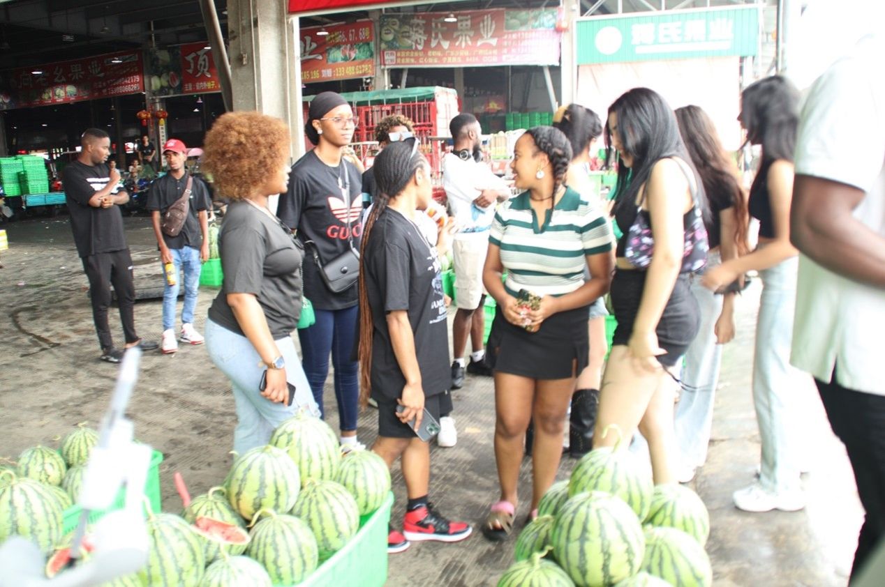 6月20日上午,冰球官网国际经济与贸易学系2021级本科生和国际留学生在国际经济与贸易系主任沈倩岭教授的带领下赴四川雨润国际农产品交易中心开展农产品国际贸易实践教学活动,经济学系明辉副教授、国际经济与贸易系李杰副教授参与此次实践教学活动。