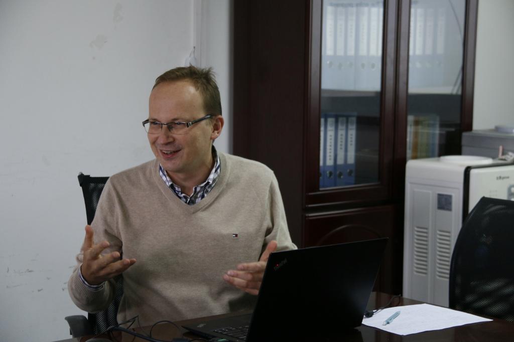 研讨会上,Cieslik教授首先做了题为“Teaching skills in international trade programs”的报告。Cieslik教授结合自身教学经验从国际学生的教育背景、教学评价差异、教师在国际学生教与学中担任的角色等方面同参会教师进行了分享。教师们也就自己在全英文教学过程中的疑惑与Cieslik教授进行了探讨。