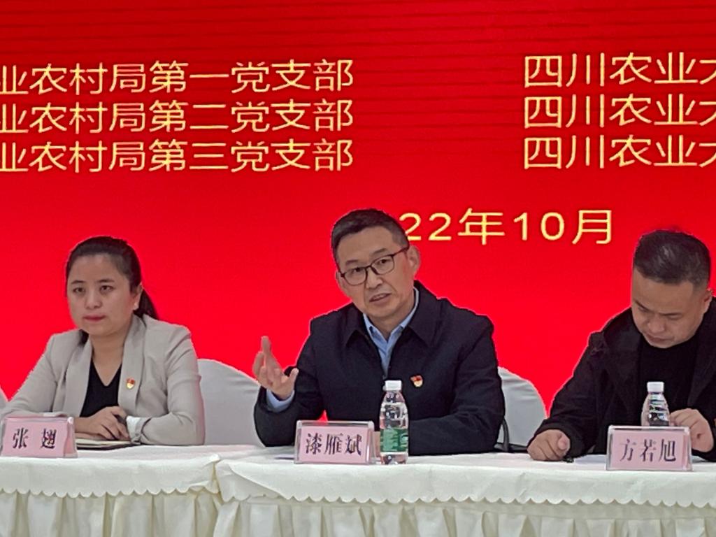 漆雁斌介绍了学院的发展历史和目前党建、办学情况,解读了党的二十大报告中提出的“全面建设社会主义现代化国家,最艰巨最繁重的任务仍然在农村”怎么看、怎么办的问题。他指出,冰球突破mg正规官网的师生党员必须把教学、学习、科研、社会服务等中心工作同当前国家重大战略需求结合起来,去探讨、研究和回答如何牢牢守住十八亿亩耕地红线,逐步把永久基本农田全部建成高标准农田;如何巩固和完善农村基本经营制度,发展新型农村集体经济,发展新型农业经营主体和社会化服务,发展农业适度规模经营等现实问题。因此学院希望与新津区农业农村局开展更深层次、更新模式的党建共建合作,持续发挥组织优势,共同推动人才引育培养,推动创新链、人才链、价值链、产业链融合发展,为打造新时代更高水平“天府粮仓”、擦亮四川农业大省金字招牌贡献川农经院力量。