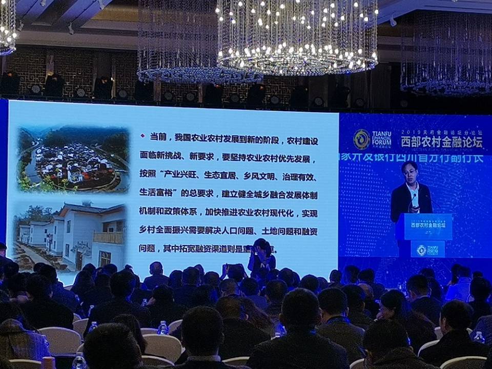 2019年11月22日11点,中国农业大学经济管理学院教授、博士生导师何广文教授、国家金融与发展实验室副主任曾刚、国家金融与发展实验室特聘研究员、新网银行首席研究员董希淼、国家开发银行四川省分行副行长马长有、四川省农村信用社联合社党委副书记谭红杰作了“金融支持乡村振兴的实践与创新”的主旨演讲。主旨演讲由何广文主持