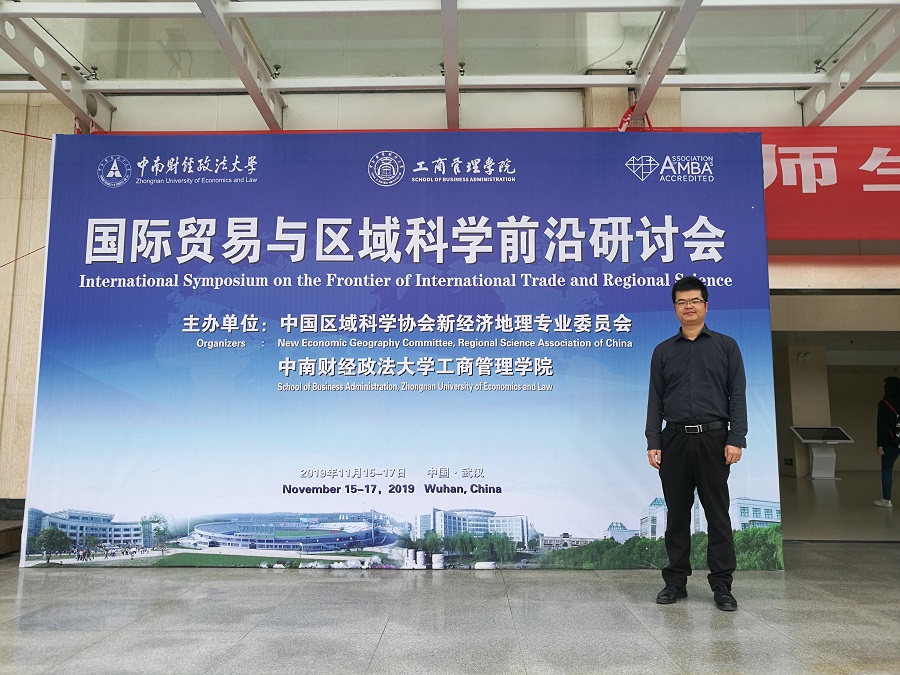2019年11月15-17日,“国际贸易与区域科学前沿研讨会”在中南财经政法大学召开。此次会议由中国区域科学协会新经济地理专业委员会和中南财经政法大学工商管理学院联合主办,就贸易自由化背景下的空间集聚现象产生的新研究话题展开学术交流。冰球官网国贸系副主任宋涛应邀参会。