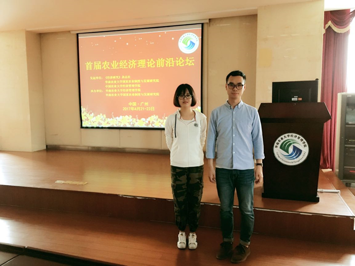 4月22日-23日,由《经济研究》杂志社、华南农业大学国家农业制度与发展研究院与中国农业大学经济管理学院共同发起,华南农业大学经济管理学院、国家农业制度与发展研究院共同承办的“首届农业经济理论前沿”学术论坛在广州举行。学院漆雁斌教授指导的2015级农业经济管理学专业研究生邓鑫及韦锋博士指导的2015级产业经济学专业研究生廖俊撰写的论文入选会议论文,受邀参会。