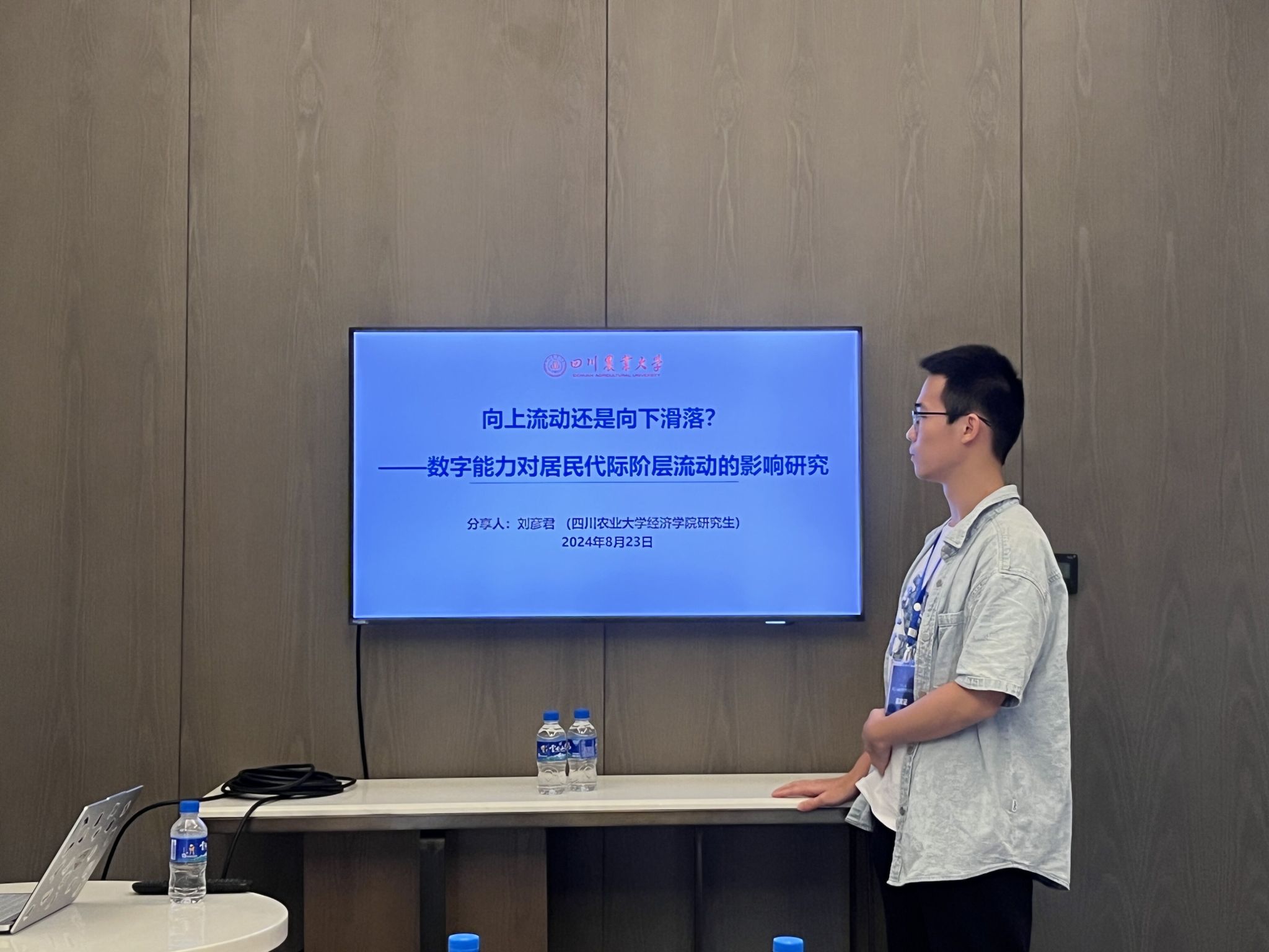 本次年会中,由冰球官网金融学系申云教授指导的金融专业硕士研究生刘彦君和农村发展专业硕士研究生杨洛梓提交的论文入选了本次学术会议。杨洛梓在“新质生产力与农业发展”专场做了题为 《数字新质生产力赋能乡村产业高质量融合发展机理与困境突破——基于现代农业产业园的多案例研究》的汇报,提供了数字新质生产力赋能乡村产业高质量融合的新视角。刘彦君在“农村人力资本”专场做了题为《向上流动还是向下滑落?——数字能力对居民代际阶层流动的影响研究》的汇报,展示了数字能力对居民代际阶层流动影响的最新成果。会上,主持老师及点评人分别从研究选题、研究逻辑、研究方法等角度对研究报告进行了精彩点评,并提出了有针对性建议,具有极大的启发作用与参考价值。