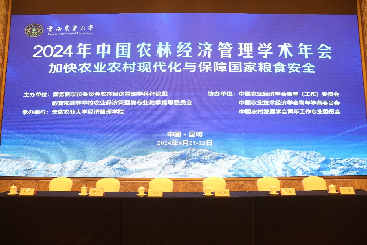 8月22-23日,2024年中国农林经济管理学术年会在云南昆明开幕,100余家单位600余名代表参会。本次年会由国务院学位委员会农林经济管理学科评议组、教育部高等学校农业经济管理类专业教学指导委员会主办,云南农业大学经济管理学院承办。在本次年会中,来自全国的知名专家学者围绕“加快农业农村现代化和保障国家粮食安全”这一主题,通过主题报告、专场报告和征文报告等形式共计60余场次,分享了最新研究成果和学术见解。