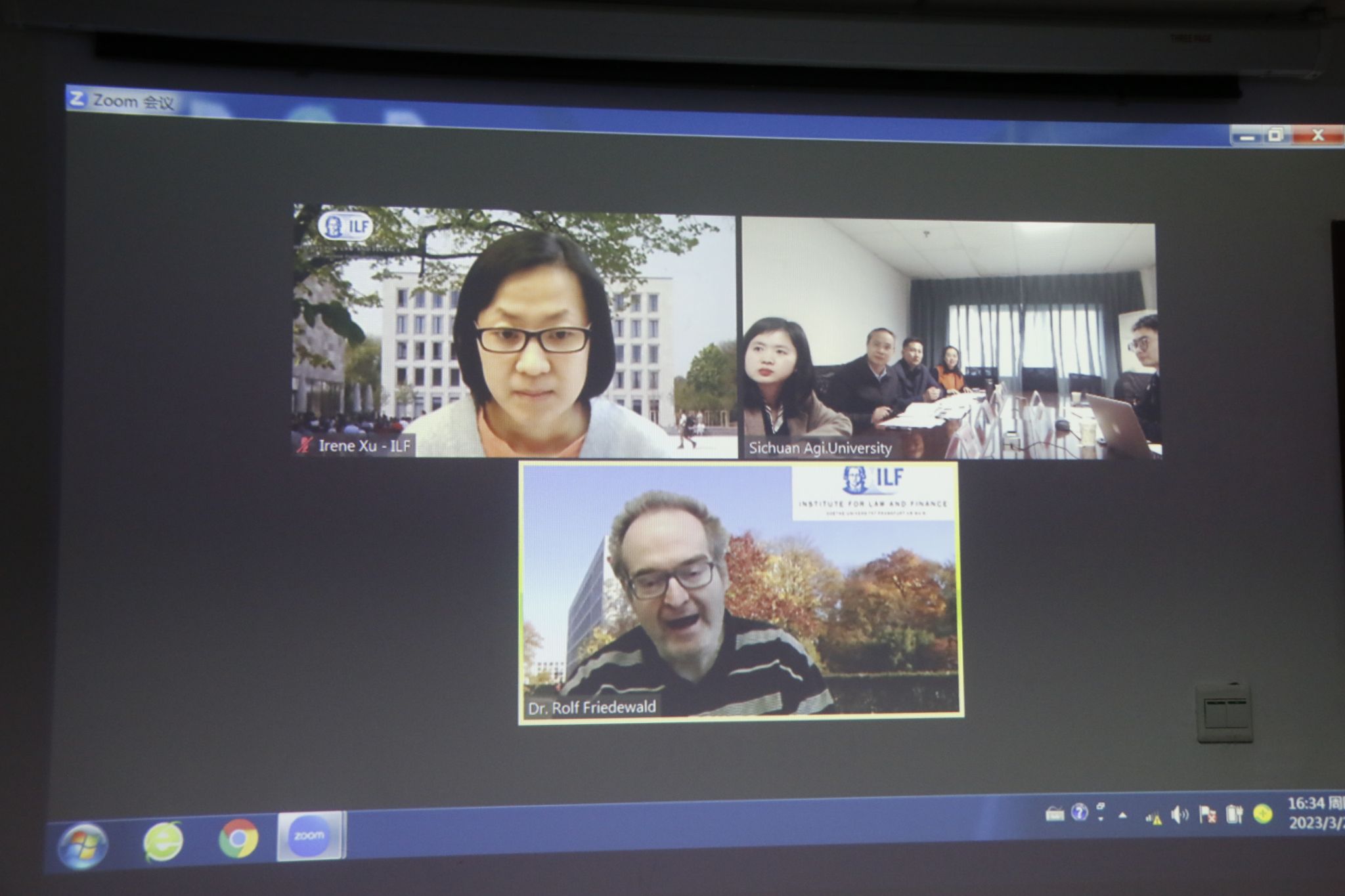 3月23日下午,学院与法兰克福歌德大学举行了线上签约仪式。法兰克福歌德大学法律与金融学院副院长Dr.Rolf Fridewald、招生市场经理Irene Xu、中德项目负责人成开宇,德国研究中心主任、冰球突破mg正规官网院长蒋远胜、副院长吴平、法学院党委副书记唐薇出席签约仪式。会议由国际经济与贸易系主任沈倩岭主持。