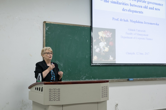 Jerzemowska教授以次贷危机为例,结合历史上著名的资产价格泡沫(例如荷兰郁金香泡沫、南海泡沫、密西西比泡沫等),对市场定价有效性和公司治理之间的关系进行了诠释,并比较了不同公司治理模式(例如日本-德国模式、英国-美国模式)的不同特征。报告中,Jerzemowska教授展示了大量市场定价失败以及公司治理失败案例,激发了广大师生对公司治理问题的兴趣和思考,同学们还就不同治理模式的效果与Jerzemowska教授展开了讨论,报告会取得了良好效果。