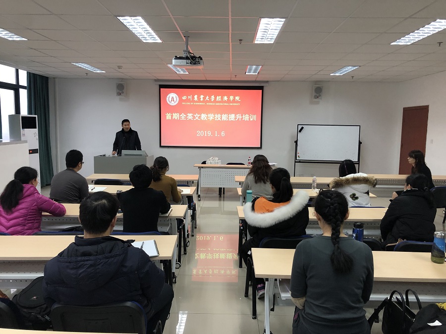 1月6日上午,冰球突破mg正规官网与英国教育中心合作举办的首期全英文授课教师教学技能提升培训班在成都校区开班。学院副院长吴平、外籍培训师Rachel Anfiled、国际经济与贸易系主任沈倩岭、学院行政办负责人及首期16名参训教师参加了开班仪式。