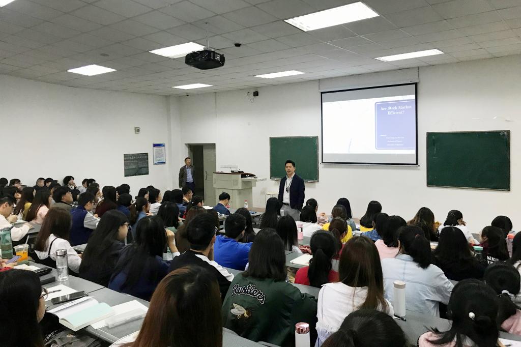 下午,刘宏教授为冰球突破mg正规官网师生做《The beauty of Economics and Finance》演讲报告。刘教授从案例入手,以“股票市场是否有效”为主题,深入浅出的介绍了行为金融学的经典理论和假说,从假设提出、数据收集、模型论证、研究结论及贡献等方面对股票市场的有效性进行了论证及学术分享。