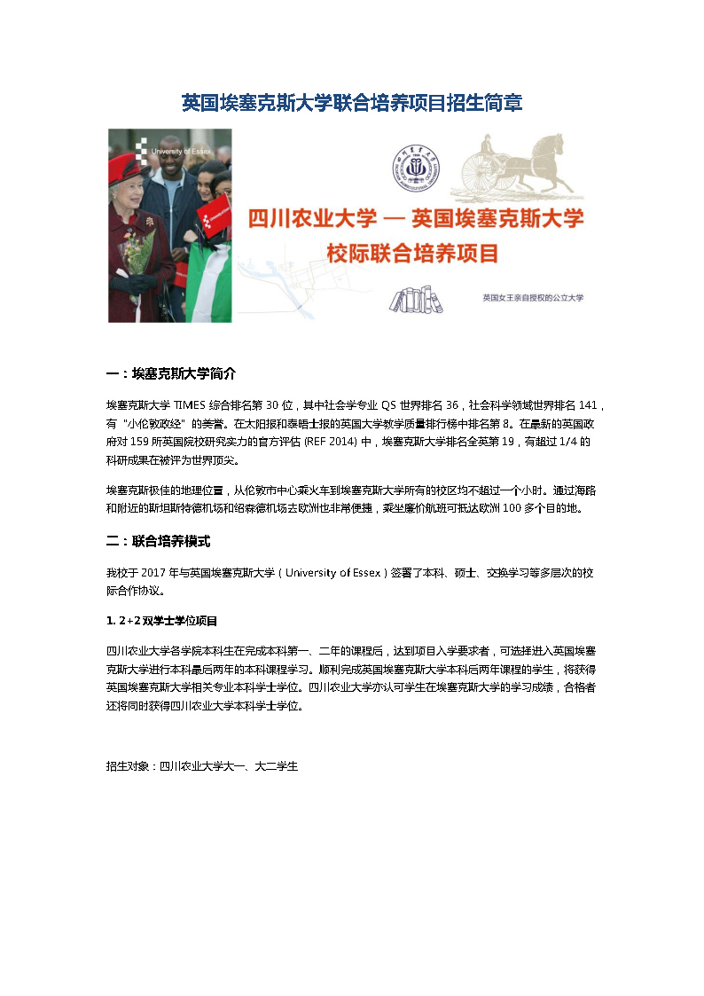 【英国】埃塞克斯大学联合培养项目招生简章2017年