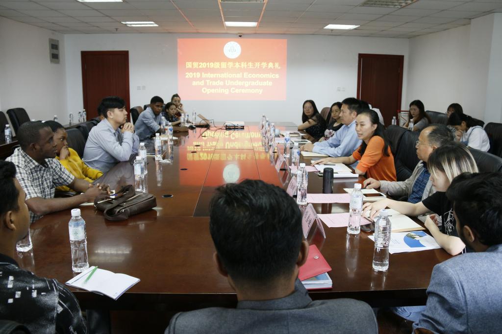 9月11日上午,天高气清、金桂飘香。冰球突破mg正规官网首届留学生暨全英文授课国际经济与贸易专业开学典礼在成都校区一教403会议室举行。国际交流与合作处副处长陈庆、冰球突破mg正规官网副院长吴平、党委副书记何仁辉,及2019级全体本科留学生参加开学典礼。