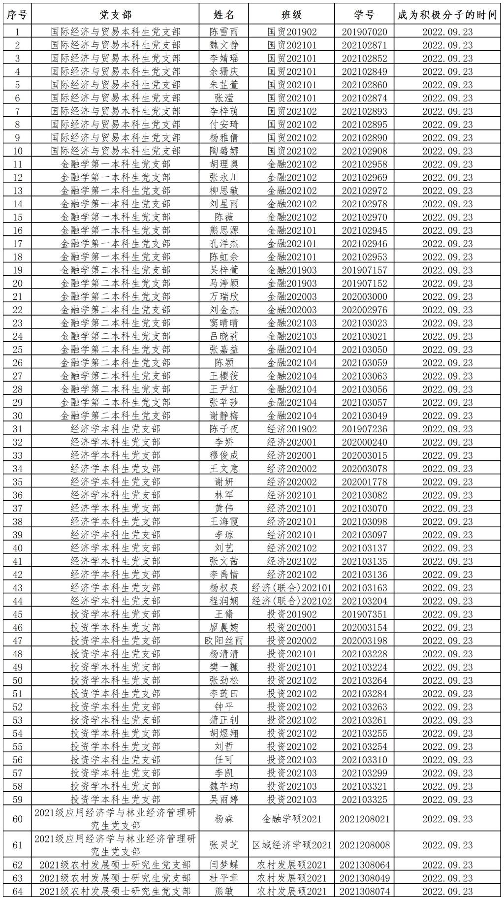 请各位新认定的积极分子认真查看公示,仔细核对个人信息,公示期2022年9月25日—29日,若有问题和异议,请实名向学院党委办公室反映。