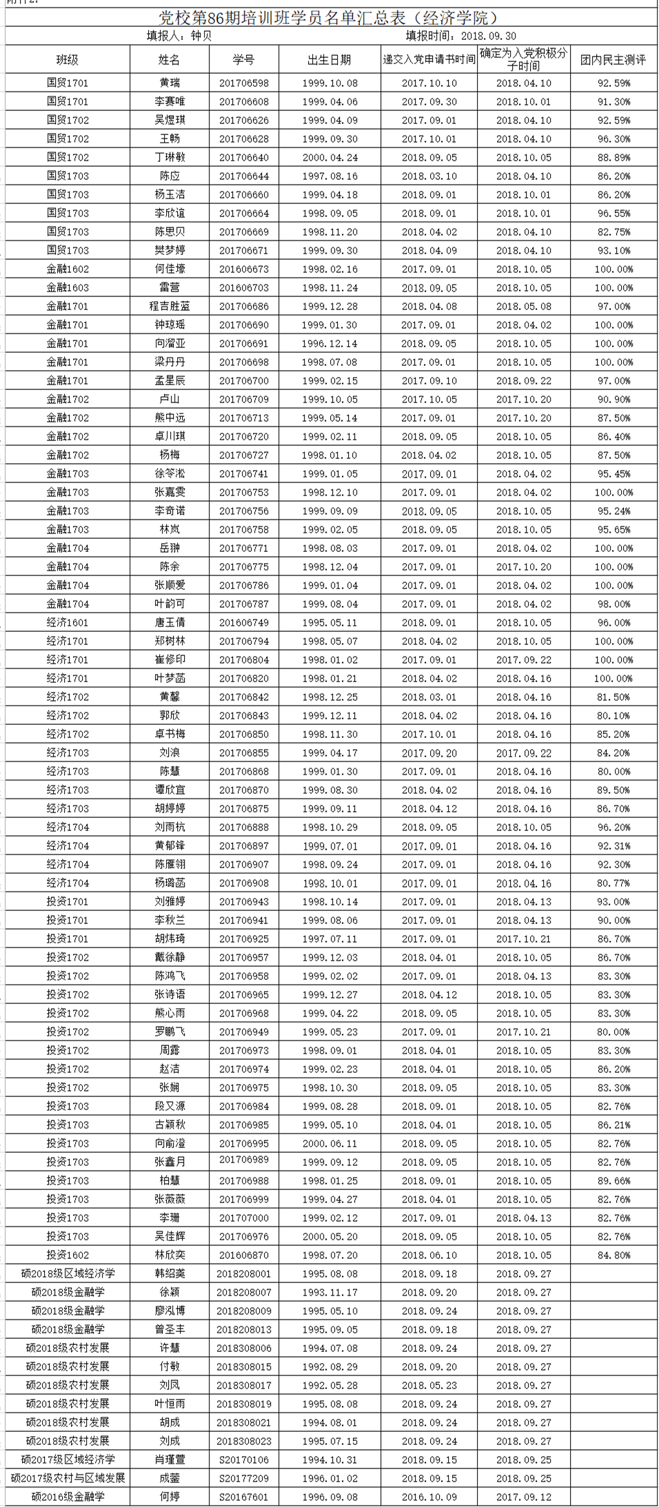 经学生团体联合会和各党支部推荐,团支部民主测评,学院党委办审核,现将党校第86期入党积极分子培训班拟推荐学员名单公示如下: