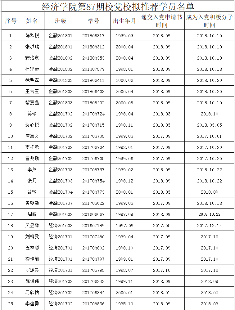 第87期校党校即将开课,现将冰球官网拟推荐学员名公示如下。