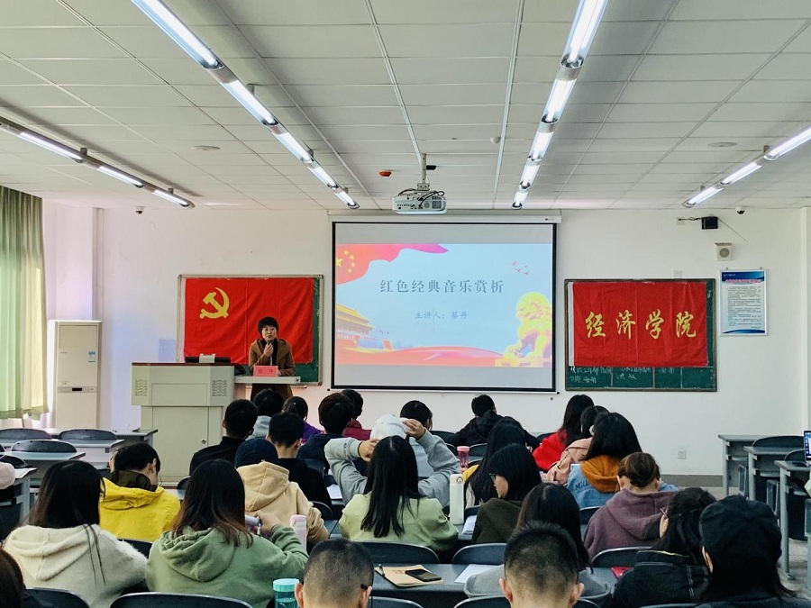 2019年11月14日中午,一堂有声有色的“不忘初心、牢记使命”专题党课在4B307教室开讲。冰球突破mg正规官网党委办公室主任蔡丹老师以“红色经典音乐赏析”为题进行授课。学院第12期发展对象培训班的70余名学员聆听了党课。