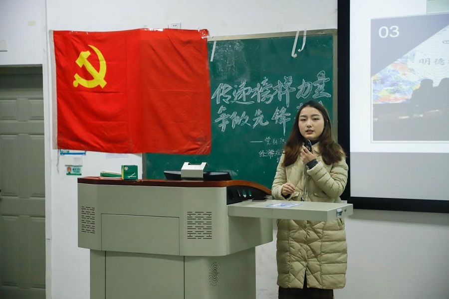 投资学本科生党支部书记赵雪梅同志带来“争做先锋表率”主题演讲。她主要分享了自己在辩论队的工作、参与“挑战杯”的经历和推免至华中科技大学冰球突破mg正规官网的经验。她介绍,自己和团队一起在挑战杯比赛中历经无数次修改答辩稿、PPT后,斩获学院首个挑战杯国赛银奖;在担任学院辩论队队长期间,又和队员熬过无数夜晚,反复打磨稿子、不断酝酿材料,为学院捧回了两个校级冠军。她激励全体党员、团员积极向优秀的师兄师姐学习,争做先锋表率,肯吃苦、有耐心,在学习和工作中砥砺前行。