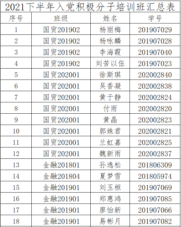 经个人申请,党支部提名、学院党委审核,现将冰球突破mg正规官网2021年下半年入党积极分子培训班拟推荐学员名单公示如下。