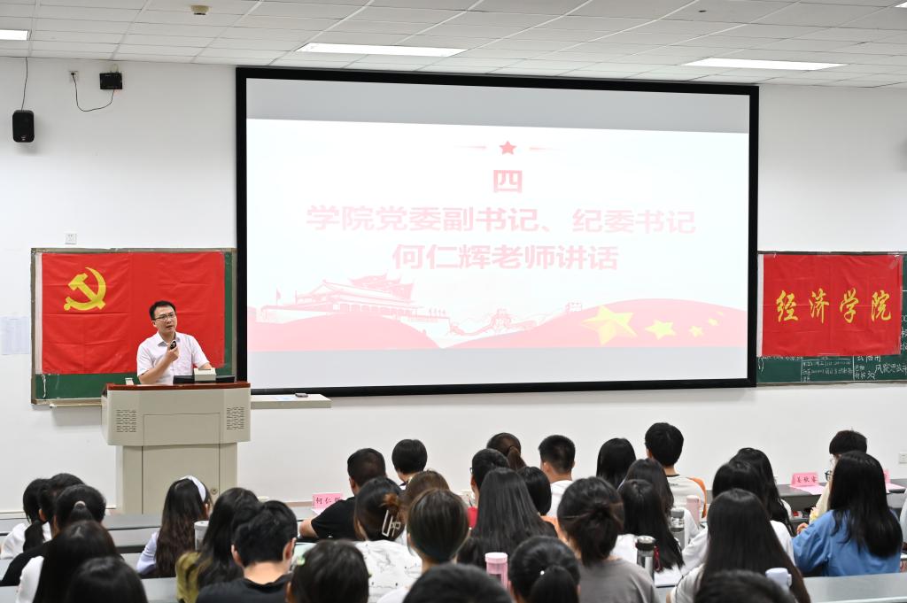 学院党委副书记、纪委书记何仁辉老师以入党的初心为切入点,引导学员们深入思考自己入党的动机。他强调,想要向党组织靠拢必须形神兼备,知行合一,在增强自身责任感、信念感的同时,要不断提升解决问题、创造价值的能力。在生活中,学员们更应结合实际,以自己的方式发挥先锋模范作用,进而带动整个团体的进步,实现自我价值。