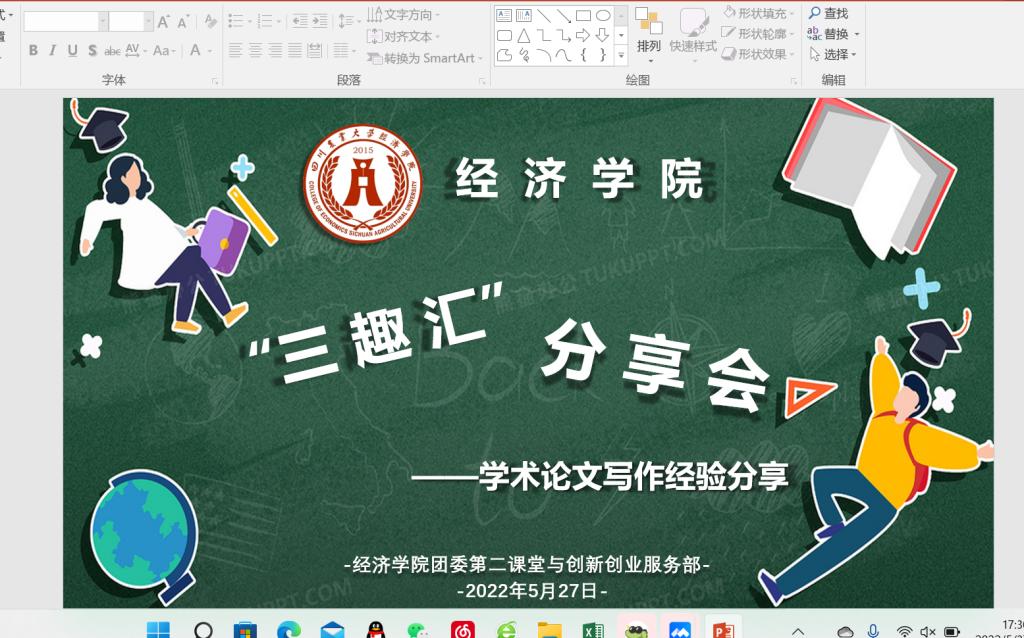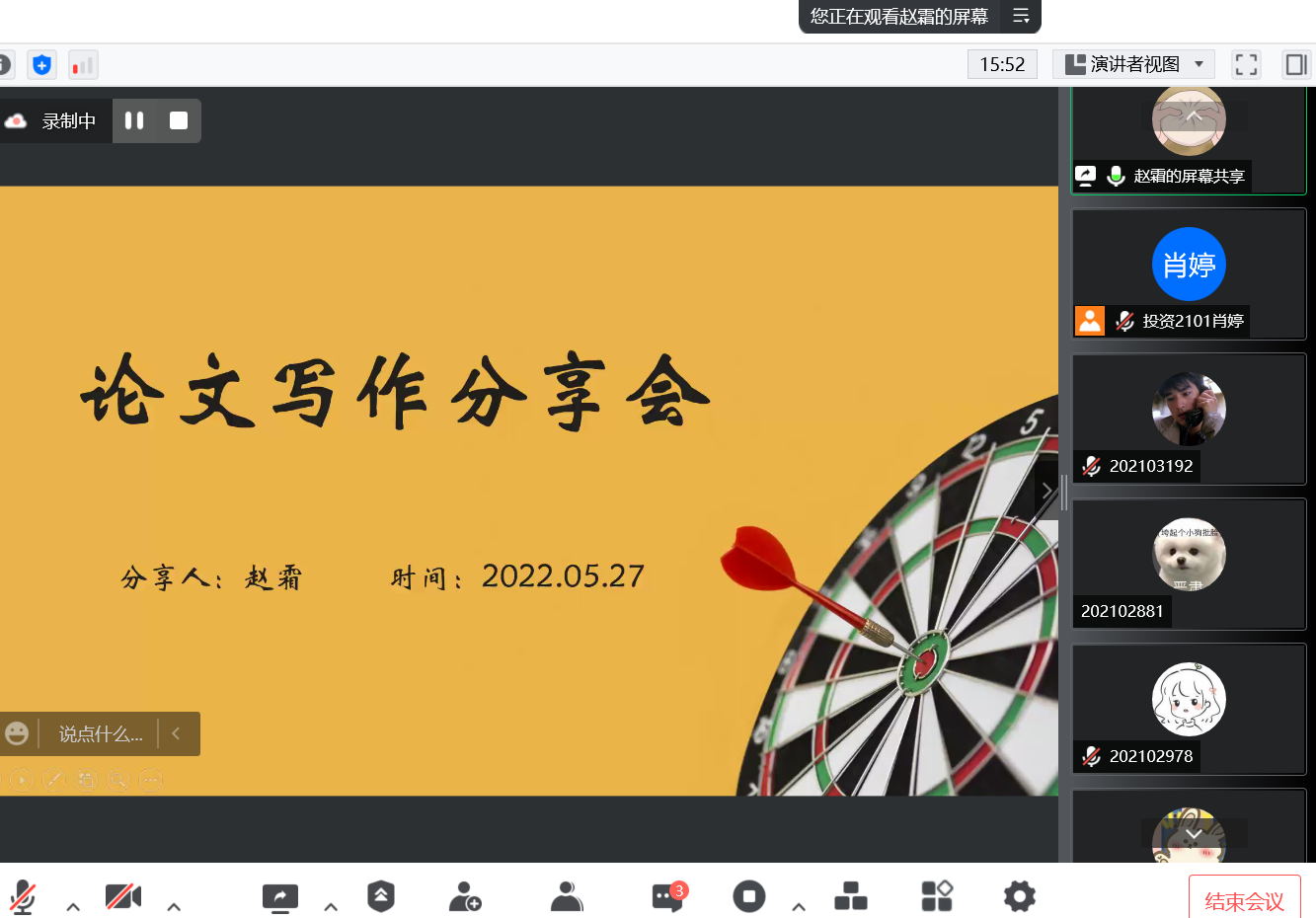 为提升冰球官网学子的学术研究、学术论文写作兴趣,冰球突破mg正规官网第二课堂与创新创业服务部于2022年5月27日下午16:30在线上腾讯会议,开展了“三趣汇”分享会——学术论文写作经验分享会,出席本次活动的嘉宾有经济2018级连盼盼,经济2019级宋一鸣,金融2019级闵锐,经济2019级赵霜,嘉宾们来自学院的各专业,有着较为丰富的学术论文写作经验,曾多次在SCI等收录期刊发表论文。