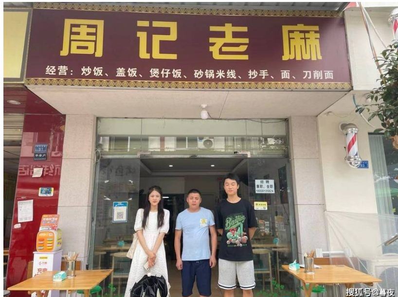 图为“外卖绿色联盟”成员在成都市温江区公平街道惠民路对商家周记老麻进行实地调研,问卷访谈