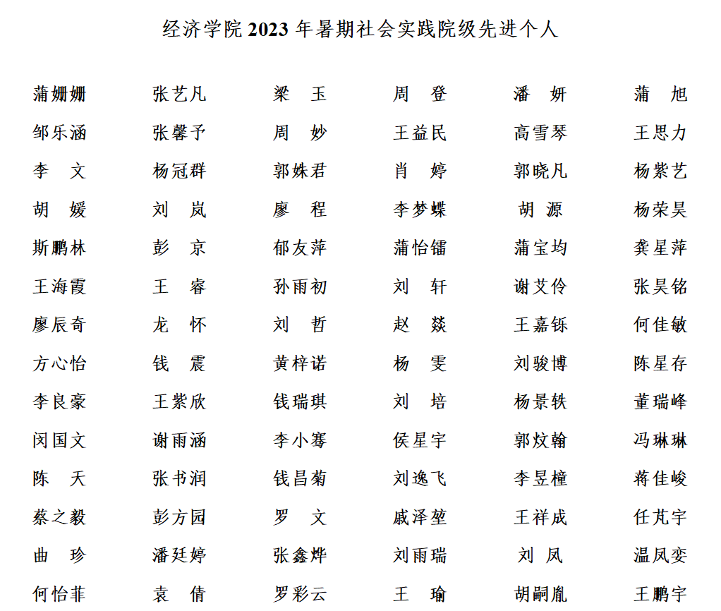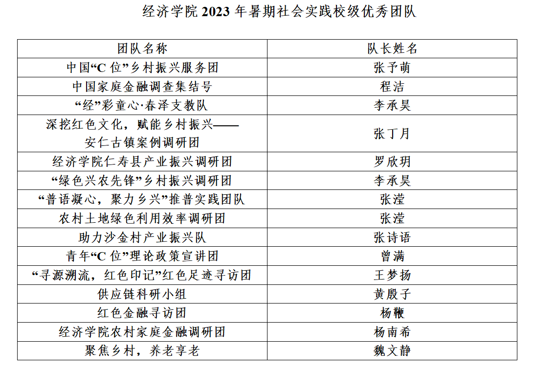 根据校团委《关于开展2023年大学生暑期社会实践评优表彰工作的通知》,经过个人自荐、团支部评议,团队申请、学院社会实践领导小组评审表彰以下团队和个人,现公示如下。