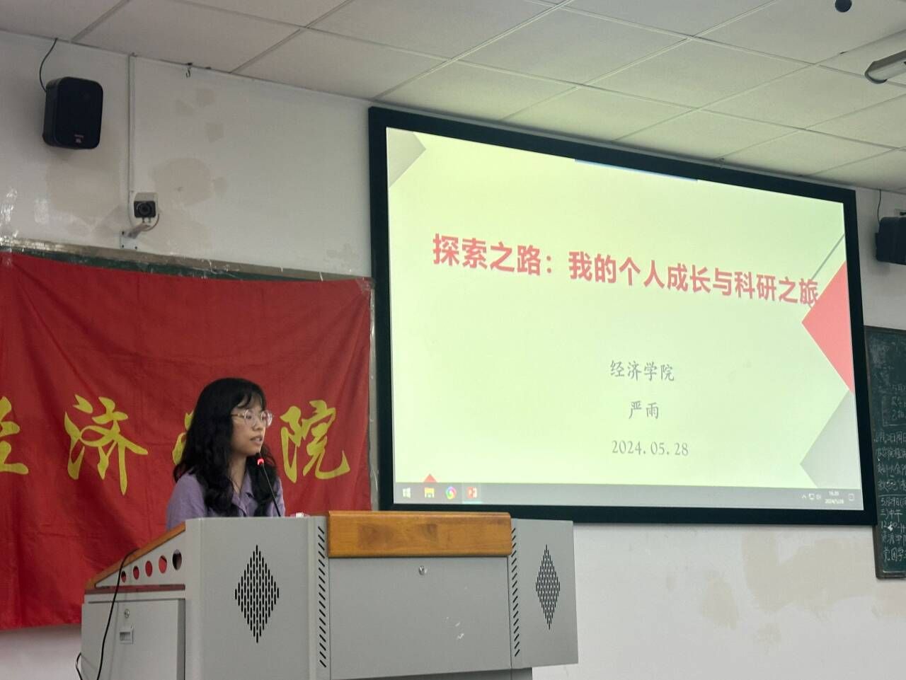 严雨老师以《探索之路:我的个人成长与科研之旅》为题与同学们分享了自己丰富经济学习履历,用自己丰富的经历告诉了同学们行万里路,看万里景,知天下事的道理。通过提供实用的建议和经验,让学同学们了解职业目标的重要性、自我认知和兴趣的探索方法,以及有效的学科职业规划策略,提高自我意识和决策能力,为未来的职业生涯打下坚实基础。