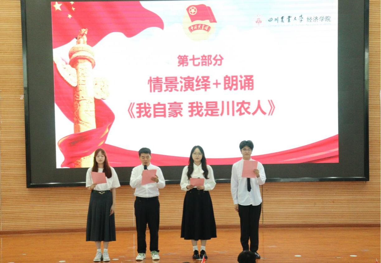 川农情韵长,青春梦飞扬。大一大二学子共同带来情景剧朗诵《我自豪,我是川农人》,通过收到录取通知书、报到、参观校史馆、毕业四个场景全方位展示对川农的印象,表达自己作为川农人的骄傲与自豪。朗诵《我自豪,我是川农人》,每一字一句都激荡心弦,让川农精神深植心底,生动地展现了川农人的精神风貌。