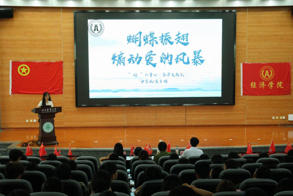 支教燃希望,筑梦青春长。春泽支教队负责人荣玉娟讲述了支教过程中的故事。“扶贫先扶志,振兴先筑梦”,在支教过程中大家紧密结合,融合学院特色,开设金融小讲堂,给当地的小朋友带来了不一样的学习体验,孩子们都对未来充满了期待。同时鼓励现场的团员青年们积极投身实践,服务社会。