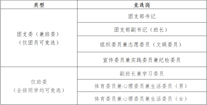 8.当选。最终将竞选人按照总体票数高低顺次排序,票数排名前4名的团员,为团支委优先候选人;票数前7名为班委优先候选人。体育委员兼心理委员兼生活委员需要满足性别要求。