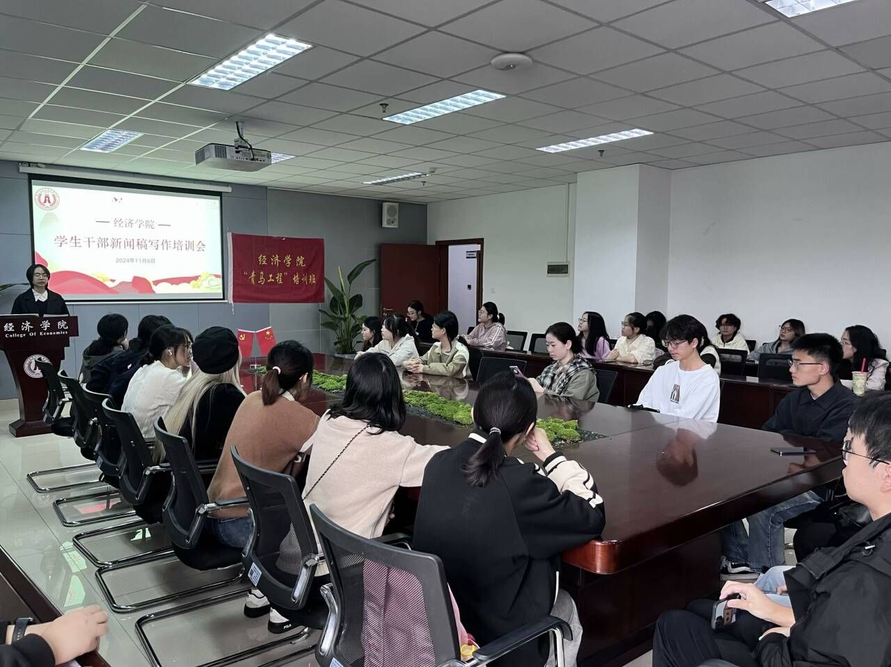 为进一步加强学生干部队伍建设,助力冰球突破mg正规官网学生干部新闻稿写作能力提升,11月6日中午,冰球突破mg正规官网在7教609举办主要学生干部新闻稿写作培训会,活动邀请主讲嘉宾校宣传部网络信息管理科长张喆老师,学院70余小班宣传委员、学生团体联合会成员参与此次培训会。