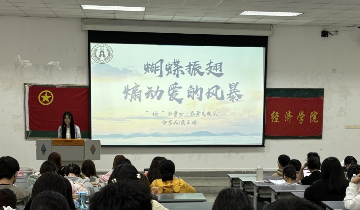 荣玉娟阐明 “用爱影响爱,用生命影响生命”的初心,分享了在阿坝州小金县的支教经历。她说道:“春泽支教队,坚持用爱去温暖孩子们的心灵,不仅开设了“中华金融小课堂”、“职业规划”等课程让孩子们感受知识的力量,还开展了“心理安全课”关注孩子们的心理健康。”在分享的最后,她阐述了投递高质量宣传稿件的重要性,并鼓励同学们参与支教助教类社会实践活动,将爱传递给更多孩子们,也将这份社会责任感传承下去。