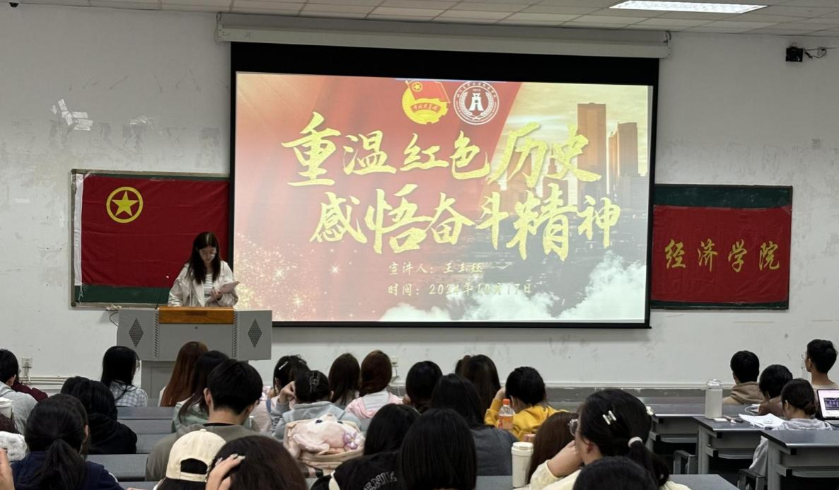 王玉珏以“重温红色历史,感悟奋斗精神”为主题,讲述了自己和团队成员们追寻红色足迹、了解革命故事的经历。会中,她向大家展示了团队部分成果,这些成果将红色文化与社会热点、绿色生态相结合,具有创新效果和独特意义,最后也得到当地政府肯定。王玉珏以“历史不容遗忘,吾辈更当自强”为结语,进一步向同学们强调了社会实践的重要价值。
