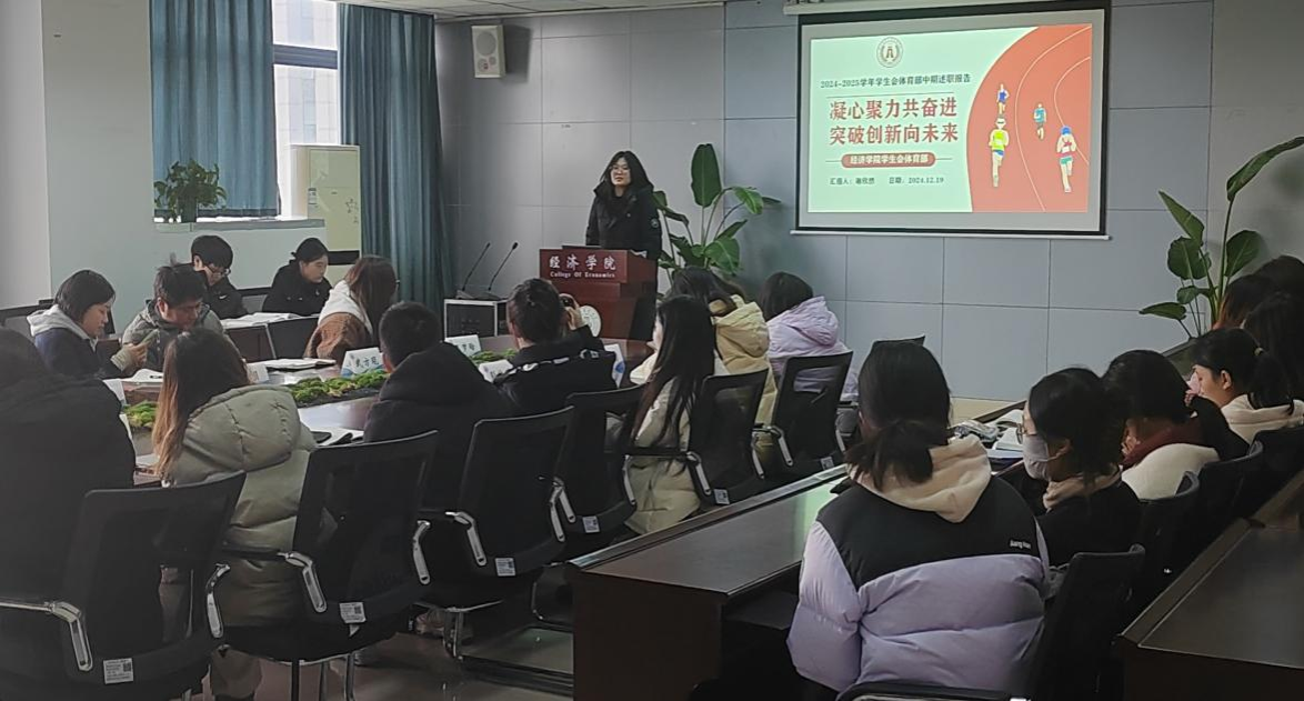 随着主持人对此次会议背景与意义的阐述,大会正式开始。各部门责任人依次上台汇报在过去半年中的工作总结,学院学生团体联合会各部门秉承“厚德博学,经世济民”的精神理念,严格遵守并积极落实学院各项章程,致力于构建学校、学院与学生间的沟通桥梁,以实际行动服务同学,推动学院各项学生工作高质量发展。