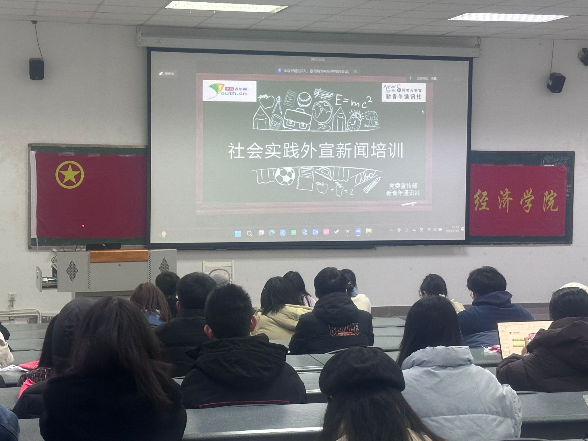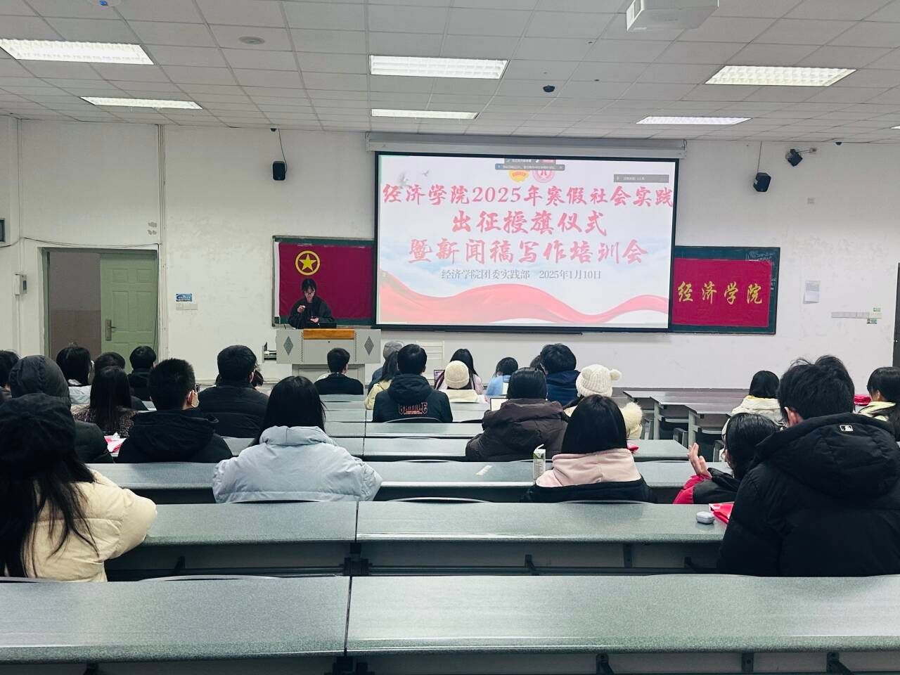 2025年1月10日中午,冰球突破mg正规官网团委实践部在4A103举行了冰球突破mg正规官网2025年寒假社会实践出征授旗仪式暨新闻稿写作培训会,致力于加强同学的社会担当意识与使命感,激励他们踊跃汇入社会实践的澎湃洪流。同时为同学们的新闻稿撰写精准把脉,助力团队成果宣传乘风破浪,拓展社会实践的广度与深度。让社会实践在育人征程中大放异彩。学院党委办公室武方琨老师、冰球突破mg正规官网新青年通讯社采编部副部长叶宇童,学院实践部负责人岳彩蓥以及各寒假社会实践团队的200余位代表通过线上及线下方式参与此次活动。