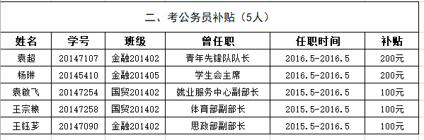 经个人意愿表达和团委审核,现将补贴名单公示如下: