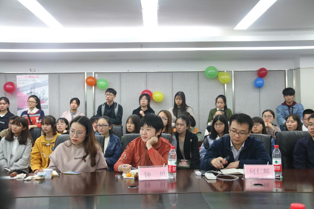 随后团委书记钟贝发言,她讲述了自己的大学生活,表达了对学院同学学好专业课的殷切希望,希望同学们能将兴趣与科研结合,政治与经济结合学习。