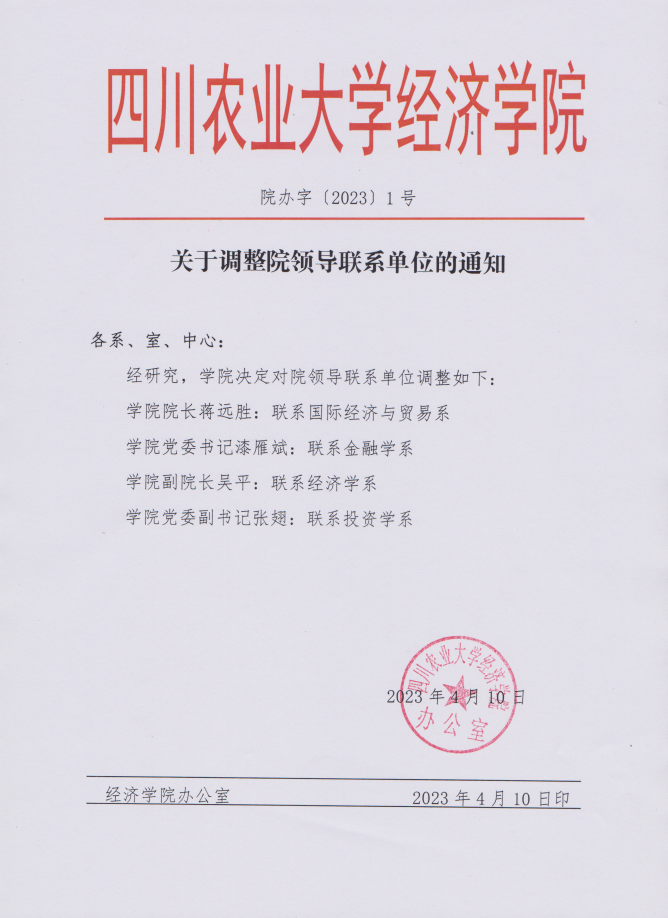 院办字〔2023〕1号 关于调整任院领导联系单位的通知