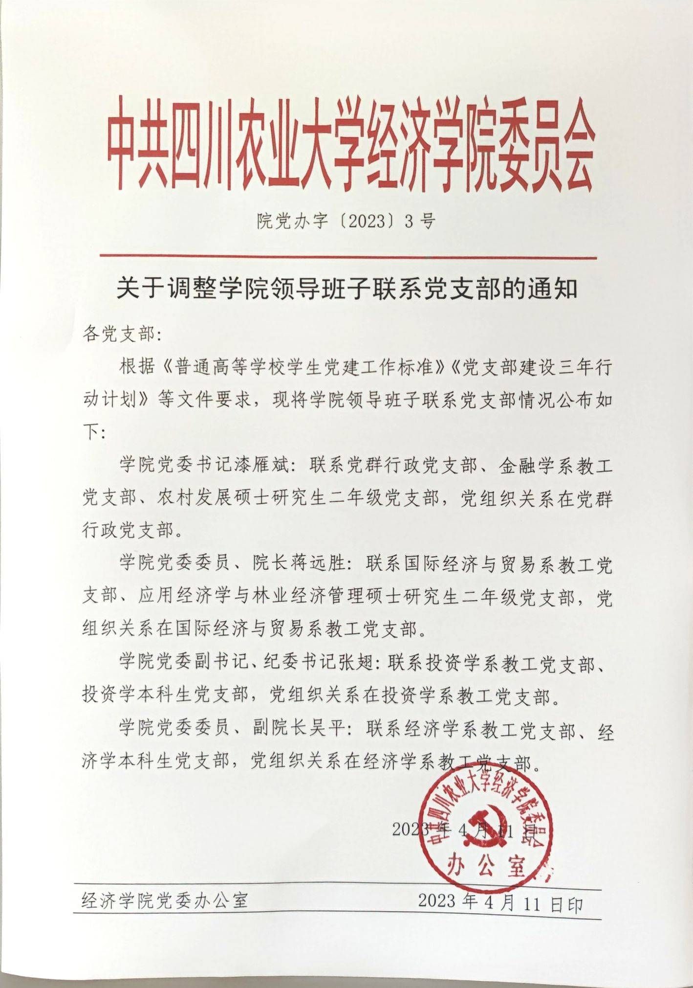 院党办字〔2023〕3号——冰球突破mg正规官网党关于调整学院领导班子联系党支部的通知