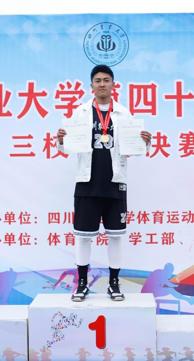 从自己打篮球变为带领一群人打篮球,再到服务全院同学的体育活动,大三时的高喜源选择竞聘学院体育队总队长,坚守在他热爱的蓝天绿地。任职期间,他精准对接10支体育兴趣特长团队,协助学院举办第二届运动会,鼓动更多的同学走出寝室、走下网络、走向操场,参与“冠军杯”篮球赛、“阳光下的川农”趣味运动会等体育活动,取得了不少可圈可点的成绩:学院排球队获“川农大精神”命名20周年成都校区男女双冠、女子篮球队蝉联“冠军杯”成都校区七连冠、乒乓球队的成员获“新生杯”冠军等个人奖项5人次。同时他自己也在学校第40届运动会三校区决赛中取得男子跳高冠军和男子铅球的“双料冠军”。体育任课教师胡鸣飞评价高喜源道:“打篮球时,高喜源对每个动作的要求都很严格,集训一日多练也从未缺席,赛场上轻伤不下火线也已是常规操作,同时他对自己的未来也有明确的规划。”