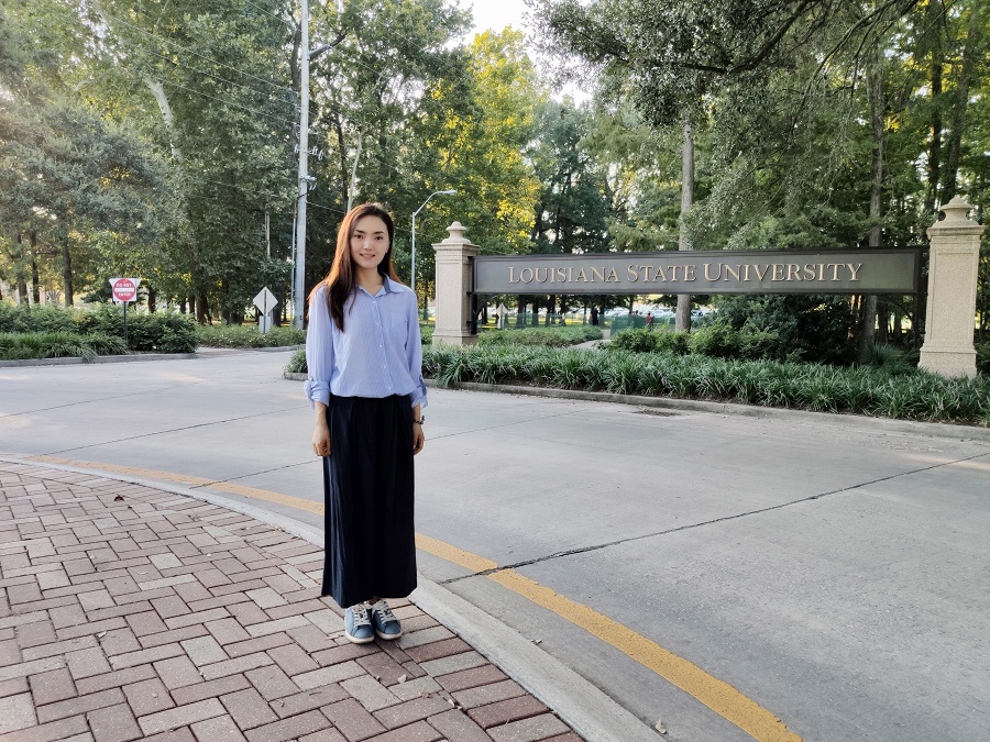 在路易斯安娜州立大学,何思妤主要旁听了3门课程:经济学应用(硕士)、经济增长理论(博士)及国际贸易理论(本科)。其中,国际贸易理论与她本科的教学工作相合,对她提高教学方法很有帮助。此外,她与导师合作了论文,并在美国南方经济学会年会与自然资源经济政策中心年会上作了报告。