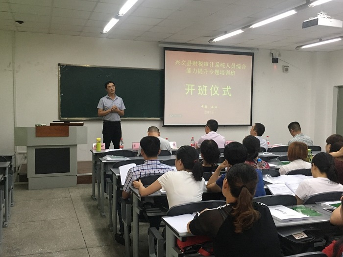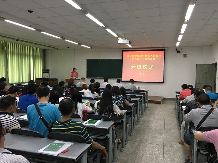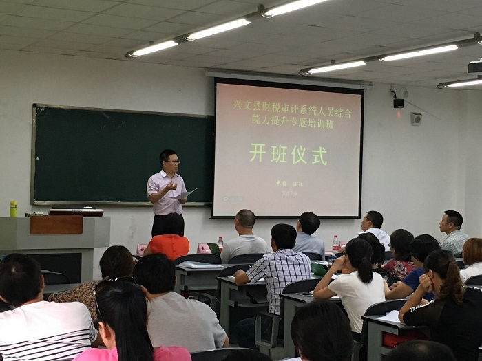 9月18日,由冰球突破mg正规官网金融系承办的兴文县财税审计系统人员综合能力提升专题培训班第三期在成都校区开班,来自兴文县财政局、国税局和地税局的73名财税一线工作人员将在冰球官网开展为期5天的培训学习。兴文县财政局局长罗继、地税局局长何建华、地税局党委书记张锐、国税局副局长王洪,学院党委书记漆雁斌、金融学系系主任刘艳等出席开班典礼。开班典礼由金融学系系主任刘艳主持。
