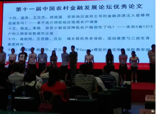 在12日下午的分论坛中,臧敦刚博士宣讲了题为“城乡居民养老保险、流动意愿与二孩生育意愿”的论文。该论文从养老保险和流动性意愿两个视角深入研究了二孩生育意愿,受到与会专家好评。论文从80余篇论文中脱颖而出,荣获“第十一届中国农村金融论坛优秀论文奖”。