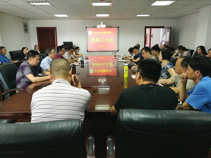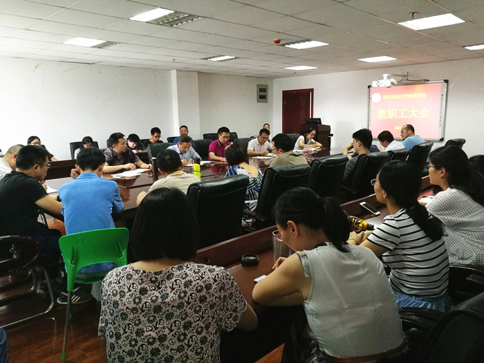 7月11日,学院召开教职工大会,总结回顾本学期工作,分析学院发展面临的新挑战,安排布置近期工作。会议由学院党委书记漆雁斌主持,学院全体教职工参加了会议。