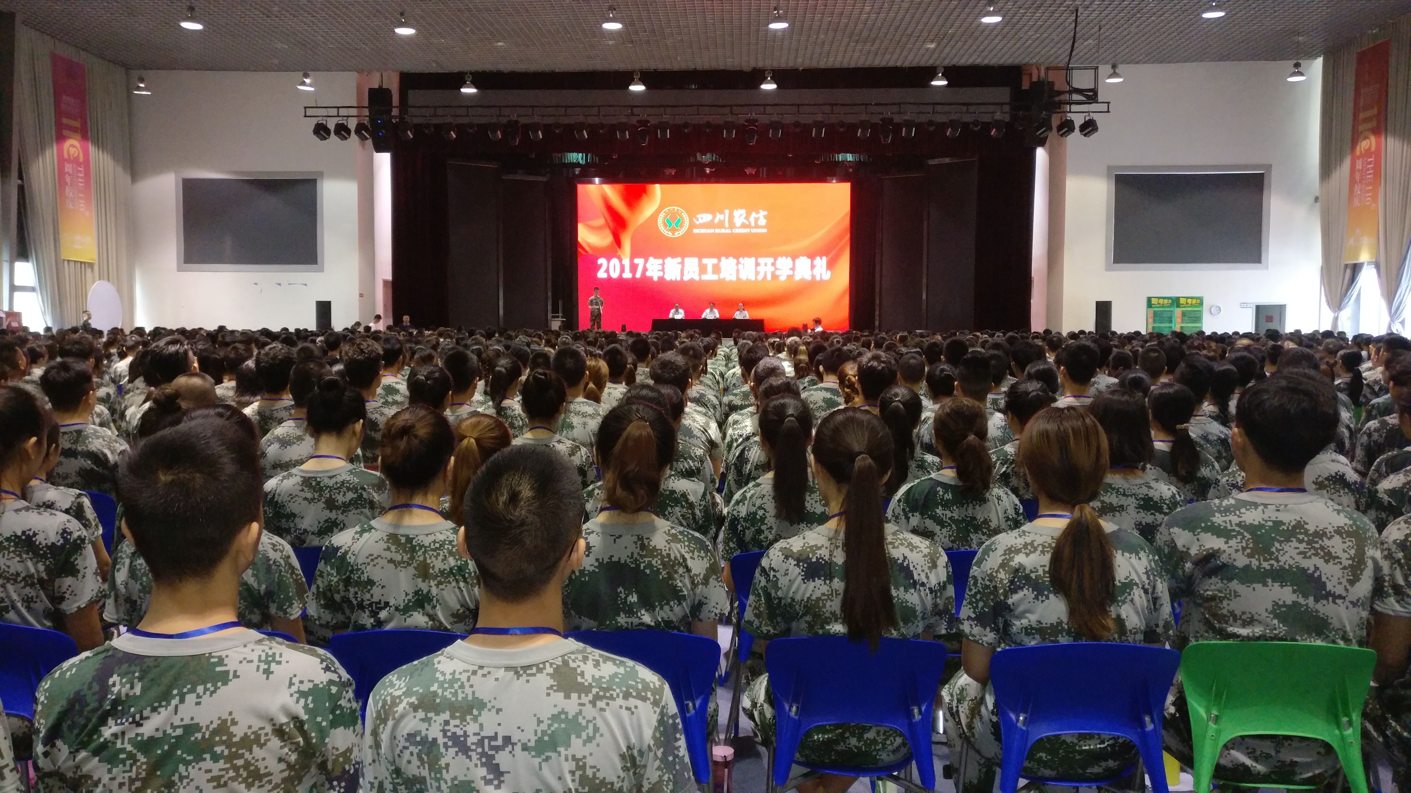 8月2日上午,由我校冰球突破mg正规官网承办的四川省农村信用合作社2017年度新员工培训班开班仪式在麦立方举行。四川省农信社联合社党委副书记焦杨、联合社培训中心总经理王冬梅、副总经理陈志安,冰球突破mg正规官网培训班班主任,来自武警部队的19名训练教官,以及来自广安武胜农商行等56家单位的71名授课教师和1820余名受训学员出席开班仪式。开班仪式由省农信社联社培训中心主任王冬梅主持。焦杨在讲话中感谢我校提供的良好的培训条件和大力支持,指出四川农大与农信社都是以艰苦奋斗和服务“三农”为理念,勉励学员们艰苦奋斗、珍惜时间、努力学习,争做优秀“农信人”。