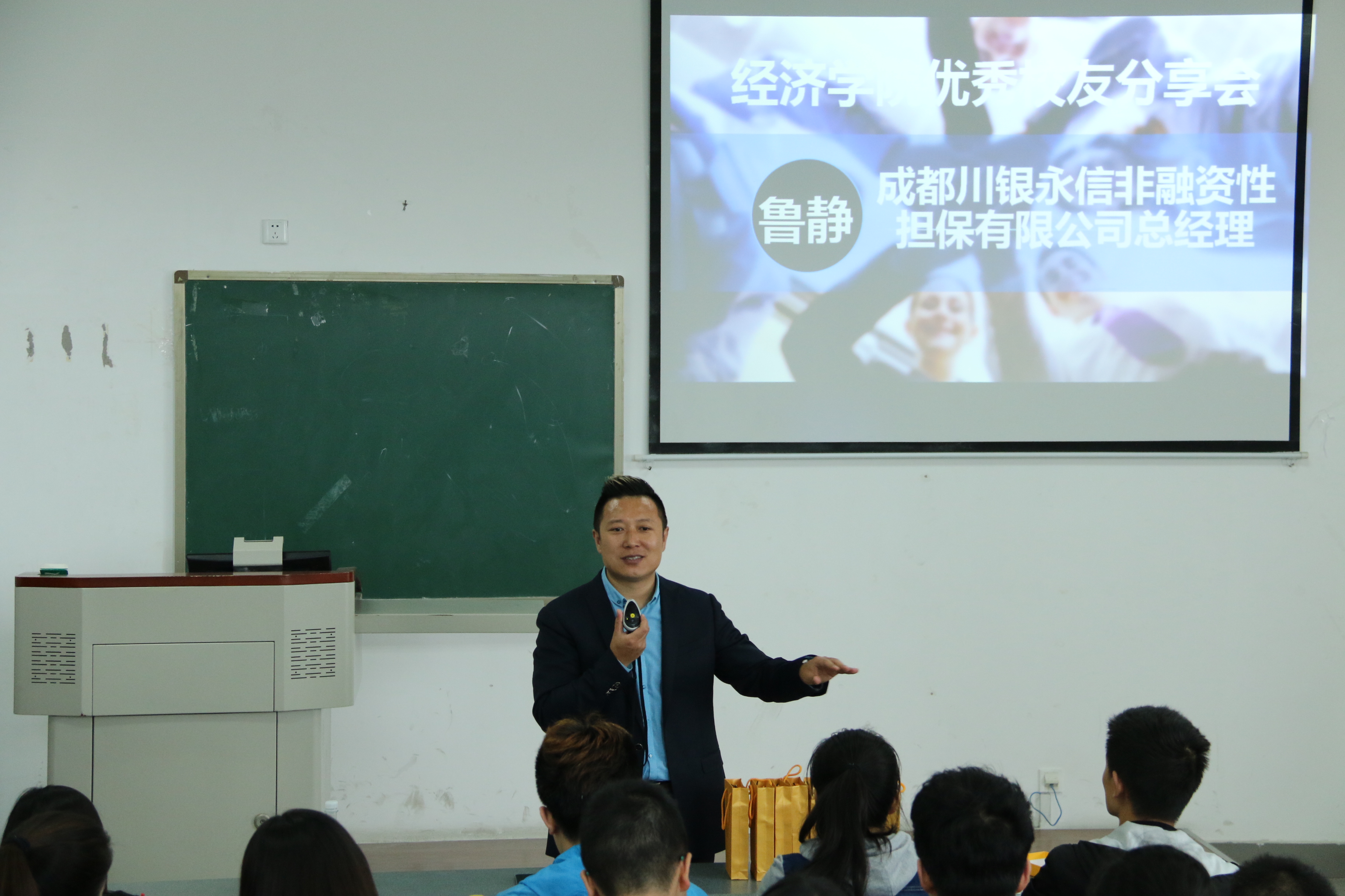 鲁静是我校原经济与管理学院2002级校友,在校期间曾担任学生会主席、篮球队队长等。他结合自身成长经历,从大学期间担任学生干部、毕业求职、职业发展以及创业历程等方面切入,向大家进行了生动翔实的讲述。“人的一生在追求什么,怎样才能改变命运呢?”“作为90后,大家有没有想过我们的优势和劣势在哪里呢?”通过不断的提问,分享会氛围热烈,同学们也开始认真审视自身,积极探寻问题的答案。鲁静谈到,知识能改变命运、选择和行动亦能改变命运,关键在于你能否坚持下去。90后作为新的一代发展主力军,具有极强的创造思想和传播思想的能力,但是也往往容易陷入忙、盲、茫的怪圈。他鼓励大家在大学期间尽早明确发展目标、提前做好个人规划、学会管理自我,要清楚认识行业没有高低之分、公司没有大小之分、工作没有好坏之分,通过考察公司的企业文化、核心价值观和理念等,选择适合自己的就业单位。