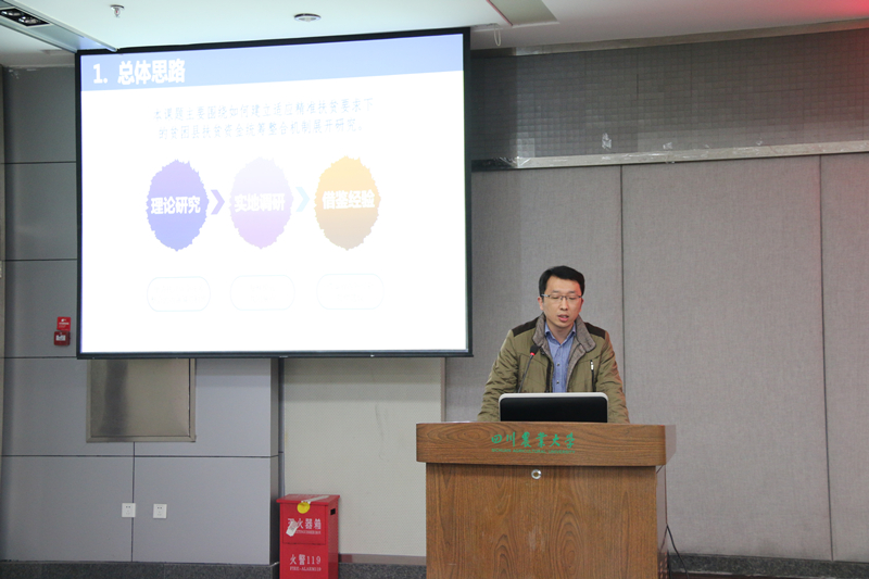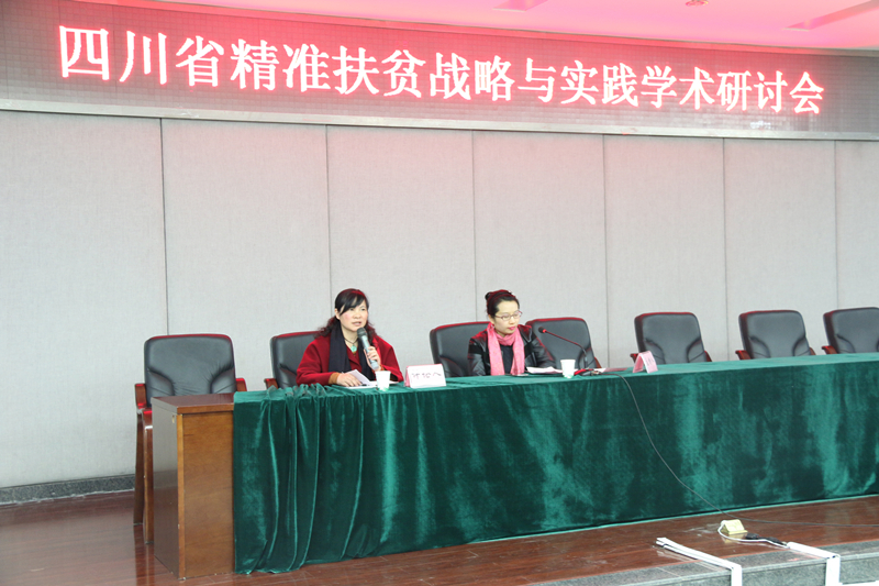 研讨会分为四个阶段,包括主题发言、专家点评和自由发问三个环节。来自各大高校、科研单位的专家学者分别就金融精准扶贫的实践与启示、教育精准扶贫、产业精准扶贫、企业参与实现全链融合闭环扶贫、精准扶贫绩效指标体系构建、精准扶贫中存在的问题、“互联网+农业”等主题内容进行大会交流发言,我校冰球突破mg正规官网臧敦刚博士、杨浩博士分别就四川省贫困县涉农扶贫资金统筹整合机制、残疾人精准扶贫两个主题进行了大会交流发言,受到与会人员的充分肯定和积极关注。我校组织部部长杨锦秀教授、科技处处长曾维忠研究员、教务处处长傅新红教授、区域经济与金融研究所所长吴平教授分别作为阶段主持人或点评专家对相应阶段的报告做了精彩的点评。